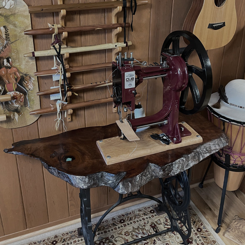 I use handpicked Veg tanned leather and use my hand crank sewing machine to stitch and create each sheath. Colors available are black and chocolate brown.
