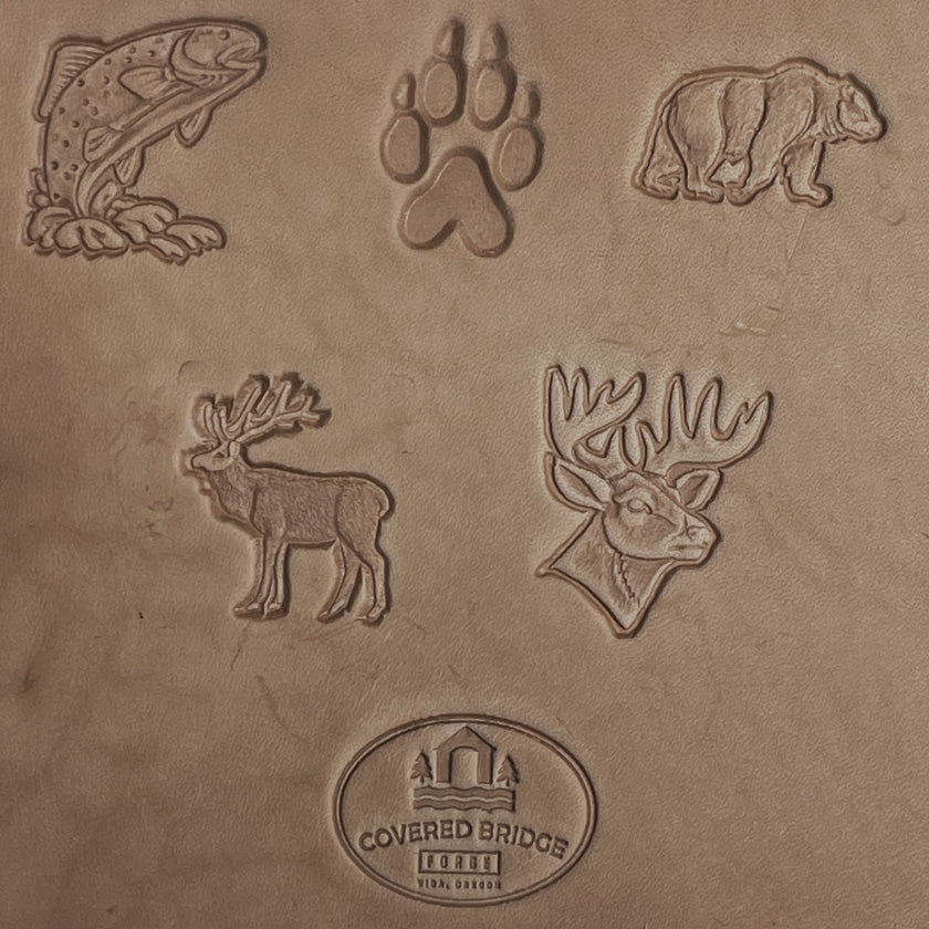 I can customize your sheath by adding animal stamps such as Elk, Wolf, Fish, Deer, buffalo, and bear for a small fee or initials.